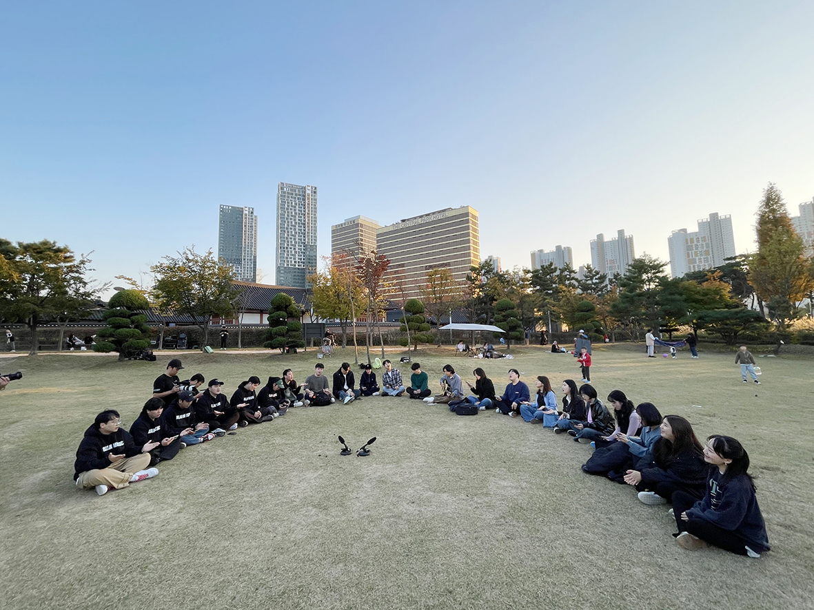 이윽고 이번 본선 캠프의 마지막, 송도 센트럴파크에서의 버스킹 시간이 다가왔습니다. 석양이 지는 저녁 시간, 푸릇푸릇 잔디밭을 무대 삼아 12팀이 둥글게 앉았습니다. 화려한 악기나 음향장비 없이 오로지 우리의 목소리로 찬양을 드렸습니다. 이틀간 이어지는 일정에 피곤할 수도 있었지만, 참가자들은 “지금이 가장 중요한 때”라며 경건하게 임했습니다. 주말 공원을 채우는 찬양 소리에 피크닉을 즐기던 사람들이 가만히 귀를 기울였습니다.
