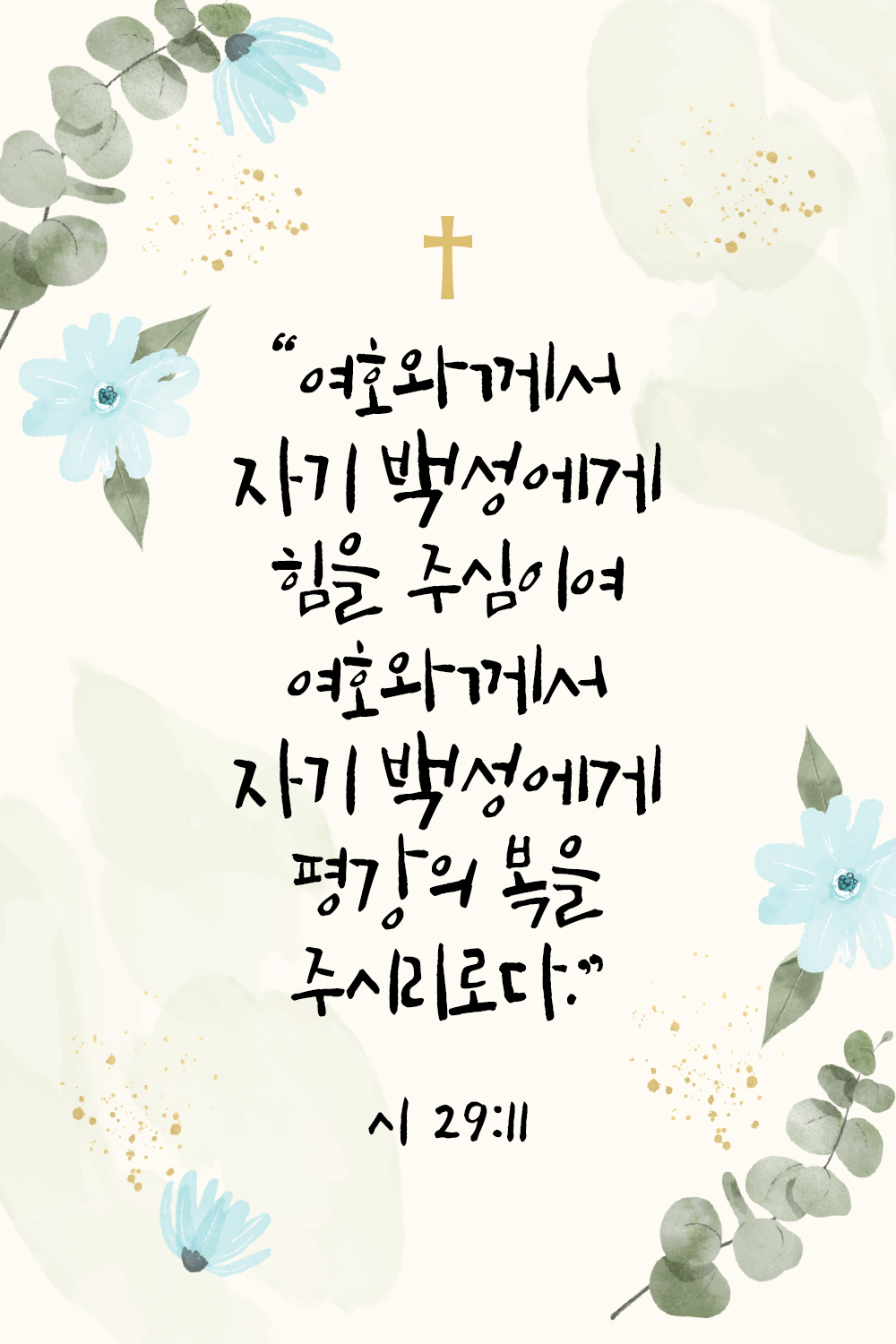 그런데 주님은 사랑하는 주의 백성들이 마음에 근심하지 않고 평강을 누리길 원하십니다. 그래서 힘을 주시고 평강의 복을 주실 것이라고 말씀하시는 것이죠.
