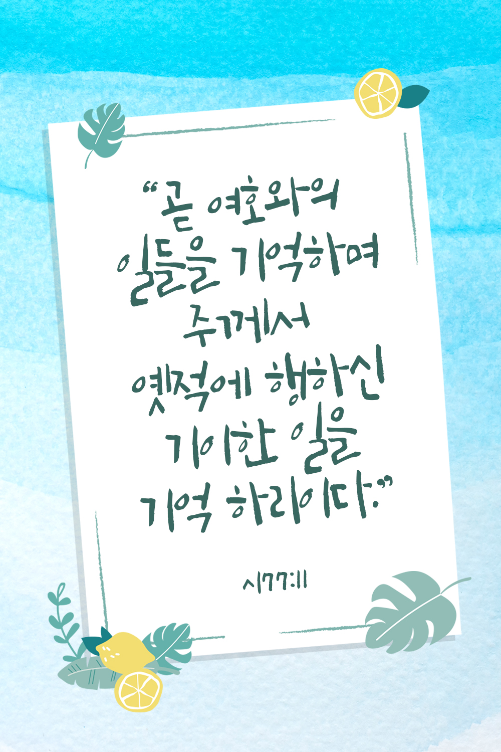 시편의 말씀처럼 주님의 일들을 돌아보고 기억하십시오. 주님의 사랑 안에 있는 나는 더 이상 절망하고 낙심할 필요가 없답니다.